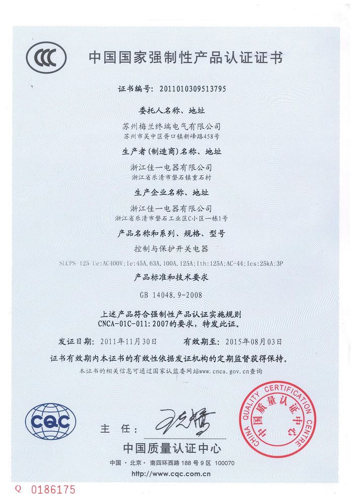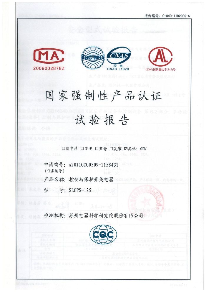 SLCPS-125控制與保護開關(guān)資質(zhì)證書