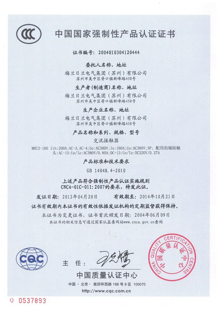MRC2-160交流資質(zhì)證書