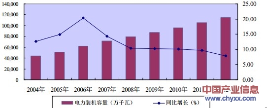 2004-2012年中國電力裝機(jī)容量及其變化趨勢(shì)