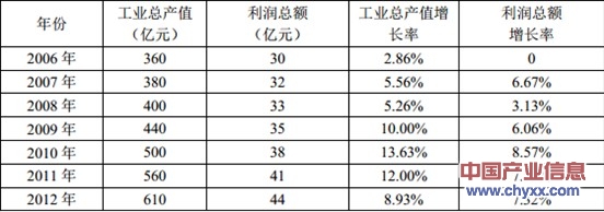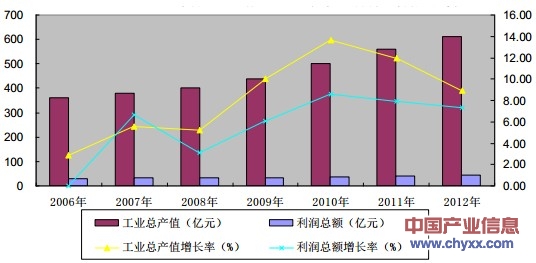 2006-2012年低壓電器行業(yè)工業(yè)總產(chǎn)值、利潤總額增長趨勢(shì)