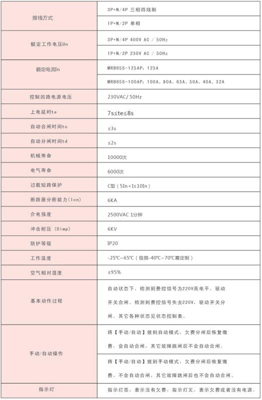 MRB65S-100AP電能表外置斷路器具有短路過載保護,通過對電表控制信號的檢測進行 自動控制接通或斷開負載,實現(xiàn)欠費分閘,付費合閘的自動控制。符臺國家電網《電能表 外置斷路器技術規(guī)范》以及GB10963.1家用及類似場所用過電流保護斷路器的標準要求。