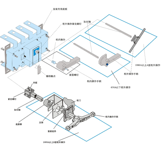 125A-630A適用于電路的接通與分斷電氣隔離,1000A以上只適用于電氣隔離。