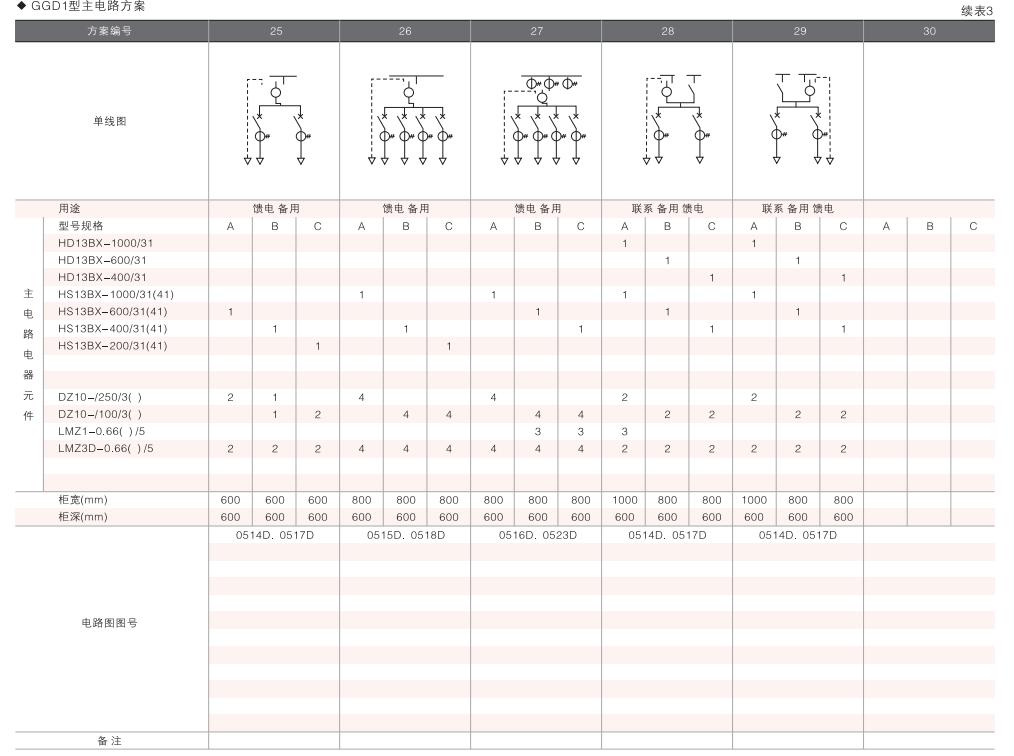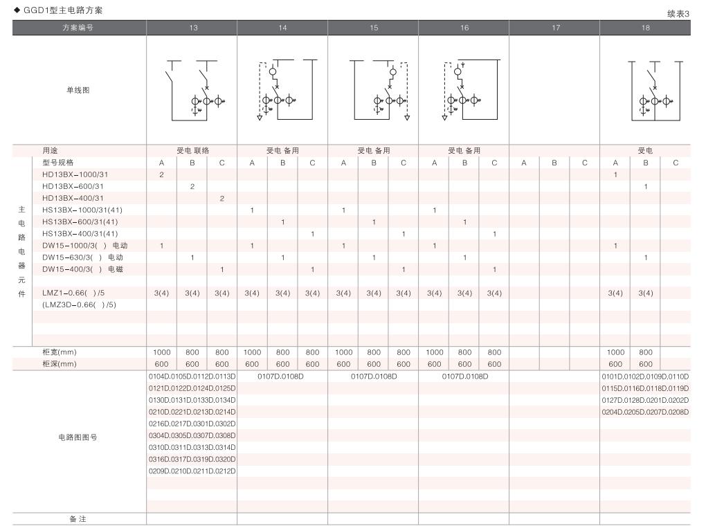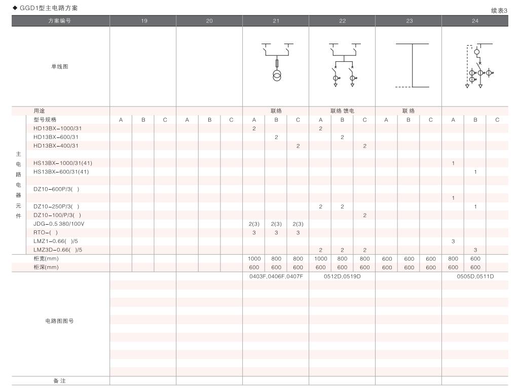 GGD柜的主電路設(shè)計7129個方案,共298個規(guī)格《不包括輔助電路的功能變化及控制電壓的變化而派生的方案和規(guī)格)。